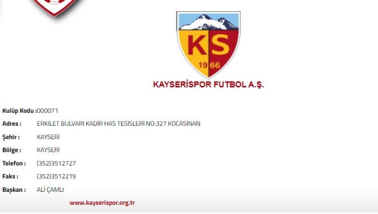Kayserispor Futbol A.Ş. olarak TFF tesciline onay verdi.