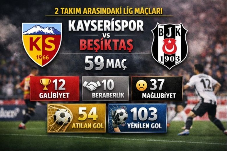 Kayserispor ile BEŞİKTAŞ arasında oynanan resmi lig maçları istatistiklerine göre, iki ekip bugüne kadar toplam 59 kez karşı karşıya geldi. Temsilcimiz bu müsabakalarda rakibine karşı 12 galibiyet alırken, 10 beraberlik ve 37 mağlubiyet elde etti. Resmi lig maçları genelinde Kayserispor rakip filelere 54 gol gönderirken, kalesinde 103 gol gördü.