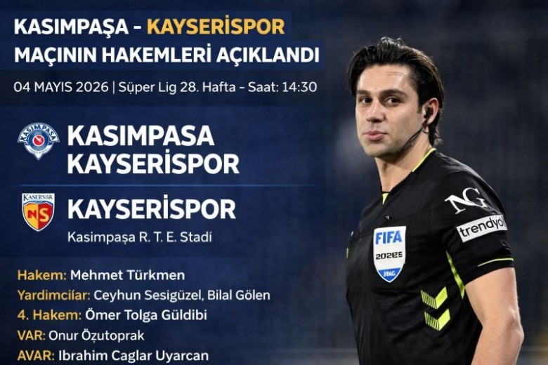 ⚽ Kasımpaşa – Kayserispor karşılaşmasının hakem kadrosu belli oldu.