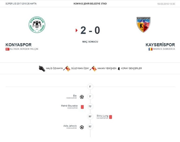 📒SARI KARTLAR; 📒23 Dk. Mehdi Bourabia (KONYASPOR)’ 📒79 Dk. Cristian Ionut Sapunaru (KAYSERİSPOR)’ 📒89 Dk. Deniz Türüç (KAYSERİSPOR)’