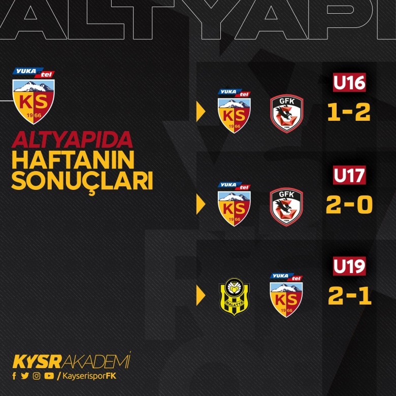 Kayserispor U16, 17 ve U19 takımlarımızın , Gaziantep FK ve Y.Malatyaspor ile oynadılar.