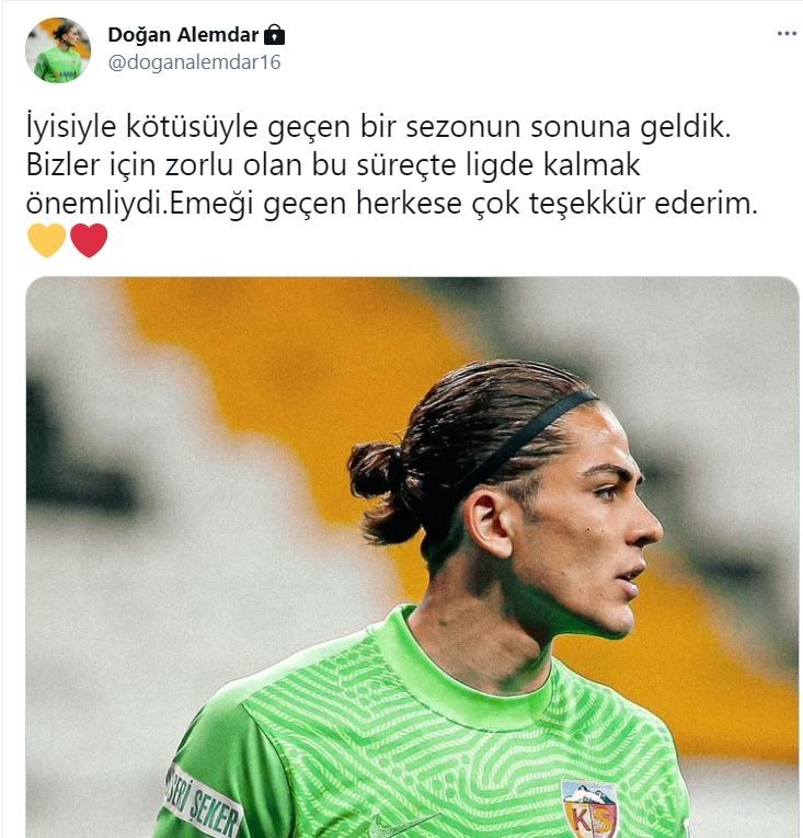 Doğan Alemdar sosyal medya hesabından Kayserispor taraftarlarına mesaj var.