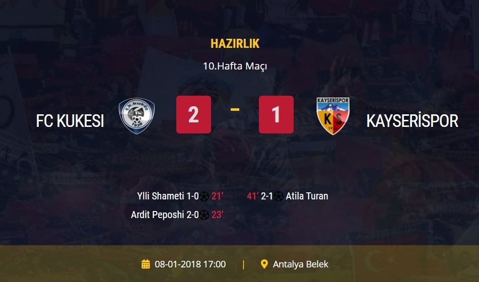 Hazılık: FK Kukesi 2-1 Kayserispor