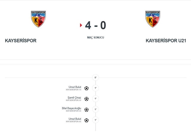 Kayserispor, milli maçlar nedeniyle Süper Lig’e verilen arada Kadir Has Tesislerinde U21 Takımı ile bir hazırlık maçı gerçekleştirdi. Kayserispor, U21 takımı karşısında karşılaşmadan 4-0'lık galibiyetle ayrıldı