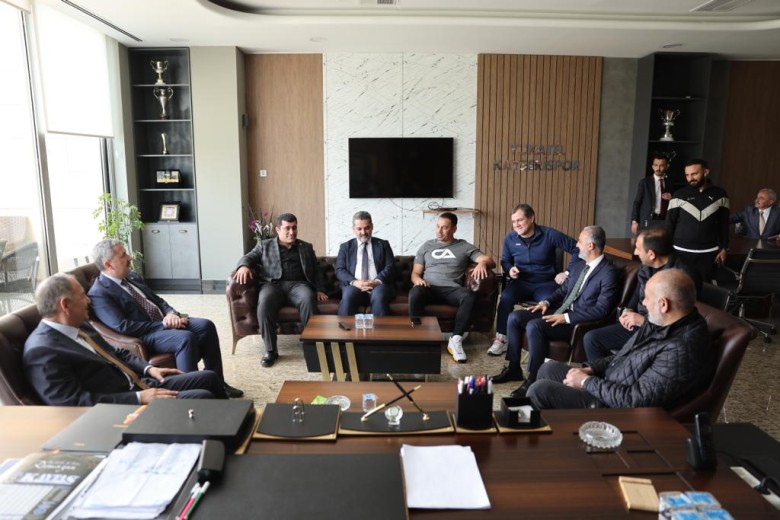 Onursal Başkanımız ve AK Parti Yerel Yönetimlerden Sorumlu Genel Başkan Yardımcısı Mehmet Özhaseki, AK Parti Kayseri İl Başkanı Fatih Üzüm ve AK Parti Kayseri Milletvekili Adayı Mahmut Gürcan ile birlikte tesislerimizde Başkanımız Ali Çamlı, Başkan Vekilimiz Nurettin Açıkalın, Asbaşkanımız Tufan Koç, Başkan Yardımcısı ve Organizasyon Sorumlusu Yücel Şahin, Futbol Direktörümüz Murat Duman ve Teknik Direktörümüz Çağdaş Atan’ı ziyaret ederek yarın oynayacağımız Kasımpaşa maçı öncesi başarı dileklerinde bulundular.