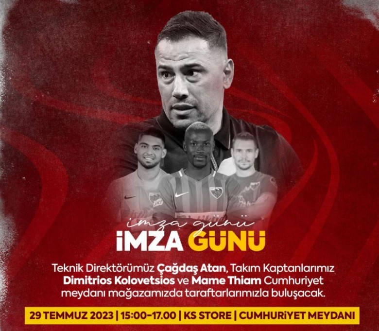 ✍️ Teknik Direktörümüz Çağdaş Atan, Takım Kaptanlarımız Dimitrios Kolovetsios ve Mame Thiam Cumhuriyet meydanı mağazamızda taraftarlarımızla buluşacak.