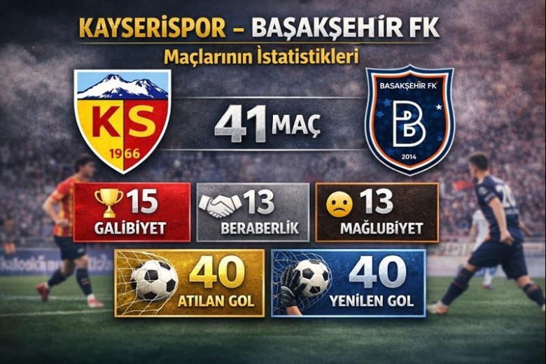 Kayserispor ile BAŞAKŞEHİR FK arasında oynanan resmi lig maçları istatistiklerine göre, iki ekip bugüne kadar toplam 41 kez karşı karşıya geldi. Temsilcimiz bu müsabakalarda rakibine karşı 15 galibiyet alırken, 13 beraberlik ve 13 mağlubiyet elde etti. Resmi lig maçları genelinde Kayserispor rakip filelere 40 gol gönderirken, kalesinde 40 gol gördü.