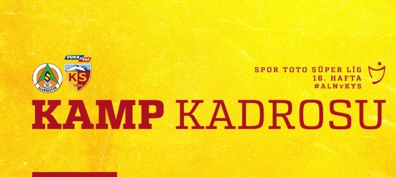 Kayserispor'un Alanyaspor ile oynayacağı maçın 21 kişilik kamp kadrosu açıklandı.
