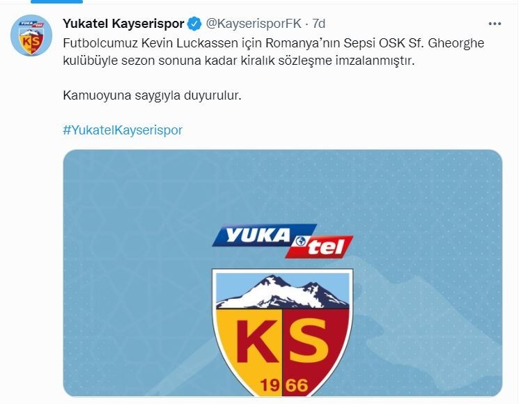 Kayserispor'un gün içerisinde TFF'den Lisansını çıkartarak Romanya ligi takımlarından Sepsi OSK Sf. Gheorghe kulübüne kiralık olarak verildiğini resmen duyurdu.