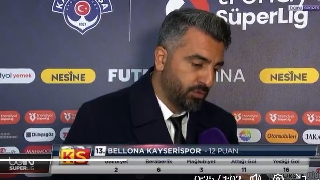 Sinan Kaloğlu:“Geçen hafta puan kaybı hepimizi çok üzdü. Maçtan sonra herkes üzgün olmasına rağmen oyuncularıma K,paşa’ya hazırlanacaz,gidip yeneceğiz dedim. İyi mücadele ettiler. Çok karakterli oyuncular.Onlarla gurur duyuyorum.Kayserispor olarak ligi iyi yerde tamamlayacağız”