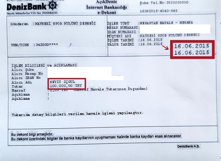 Seyit İçgül ile Kayserispor Kulübü arasından imzalanan 6 Haziran 2015 tarihli sözleşme, bir kulübünün nasıl kötü yönetildiğinin ve kaynaklarının nasıl har vurulup harman edildiğinin anlaşılması açısından son derece önemli bir örnektir. Seyit İçgül, söz konusu sözleşme ile 31.05.2015-31.05.2018 tarihleri arasında görev yapmak üzere, “kulüp genel menajeri” unvanı ile Kayserispor Kulübü tarafından istihdam edilmiştir. Sözleşmeye göre bu görevi karşılığından Seyit İçgül’e peşin olarak 100.000.-TL. ödenmiştir. Sözleşmenin birinci yılında kendisine aylık 25.000.-TL (net) ücret ödenecektir. Ayrıca sözleşmede sözleşmenin haksız feshi hali için öngörülmüş, 100.000.-Amerikan Doları tutarında bir cezai şart düzenlenmiştir.