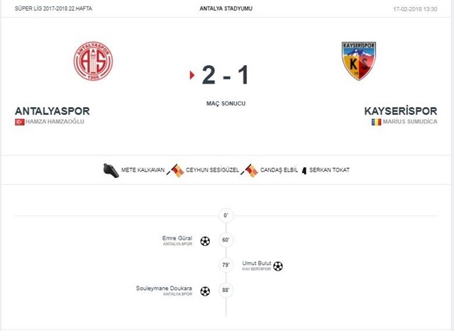 ⚽GOLLER ⚽ 60 Dk. Emre Güral (ANTALYASPOR )’ ⚽ 79 Dk. Umut Bulut (KAYSERİSPOR )’ ⚽ 88 Dk. Souleymane Doukara (ANTALYASPOR )’