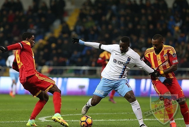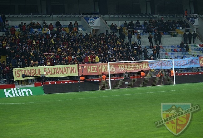 KAYSERİSPOR-Trabzonspor maçı hem tribünde hem sahada dostluk ve kardeşlik gösterileriyle başladı. Anadolu kardeşliği ikliminde geçen karşılaşmayı Trabzonspor tek golle kazandı. Maçta tartışmalı 3 penaltı pozisyonunda oyunu devam ettiren hakem Serkan Çınar protesto edilirken ve Kayserispor Teknik Direktörü Hakan Kutlu'yu ise, taraftar istifaya çağırdı.
