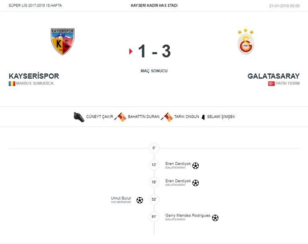 ⚽GOLLER ⚽ 13 Dk. Eren Derdiyok (GALATASARAY )’ ⚽ 18 Dk. Eren Derdiyok (GALATASARAY )’ ⚽ 52 Dk. Umut Bulut (KAYSERİSPOR )’ ⚽ 91 Dk. Garry Mendes Rodrigues (GALATASARAY )’