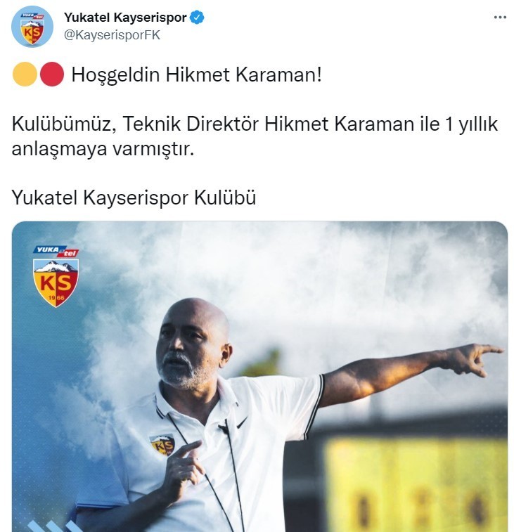 Kayserispor, Yönetim Kurulu Hikmet Karaman ile yapmış olduğu anlaşma sonucunda sosyal medya hasebabından 1 yıllık anlaşma yaptığını duyurmuştu.