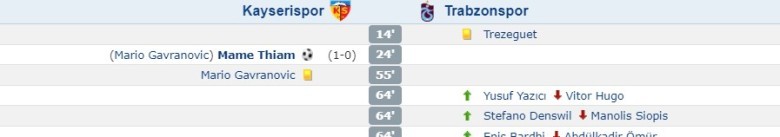 01.10.2022 tarihinde Kayseri'de oynanan Kayserispor 1-2 Trabzonspor maçında Mario Gavranoviç'in golünü Mame Thiam'a yazdıkları görülmektedir.
