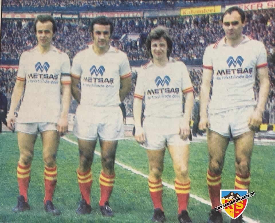 1977-1978 İstanbul'da Galatasaray-Kayserispor Türkiye Kupası Çeyrek Final 1.maç öncesi. Sahada Galatasaray'dan #Kayserispor'da transfer olan. Yılmaz Yayman, Metin Kurt, Mustafa Ergücü ve Enver Ürekli.