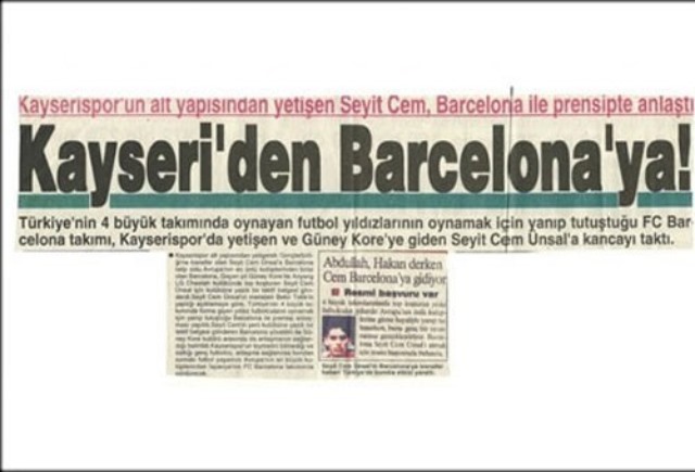 Barcelona'ya İlk Türk Futbolcu'nun Kayserispor'dan bir Kayseri'li Seyit Cem ÜNSAL Olduğunu biliyor muydunuz?