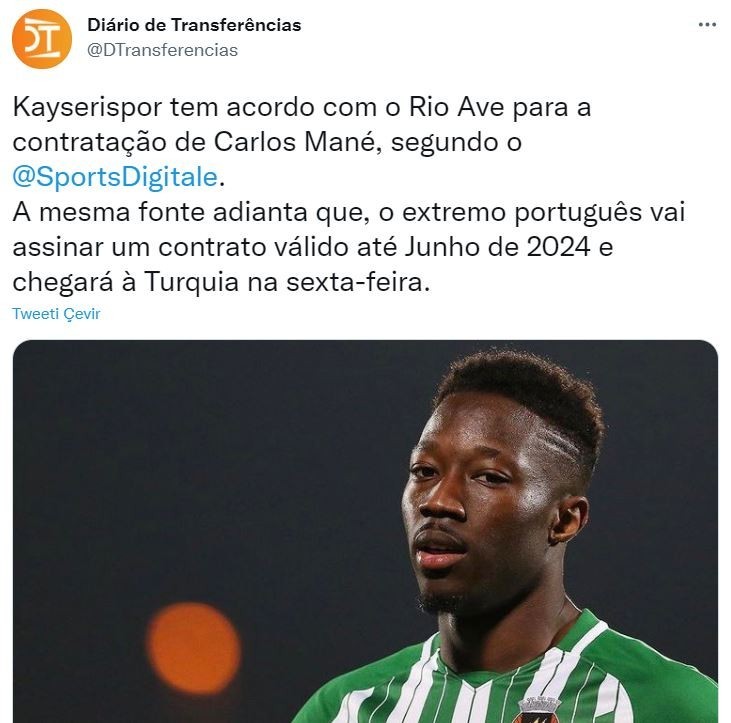 Kayserispor'un uzun sürederi peşinde olduğu Rio Ave ile Carlos Mane'yi kiralamak için anlaştı.